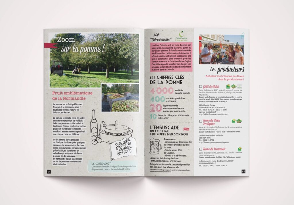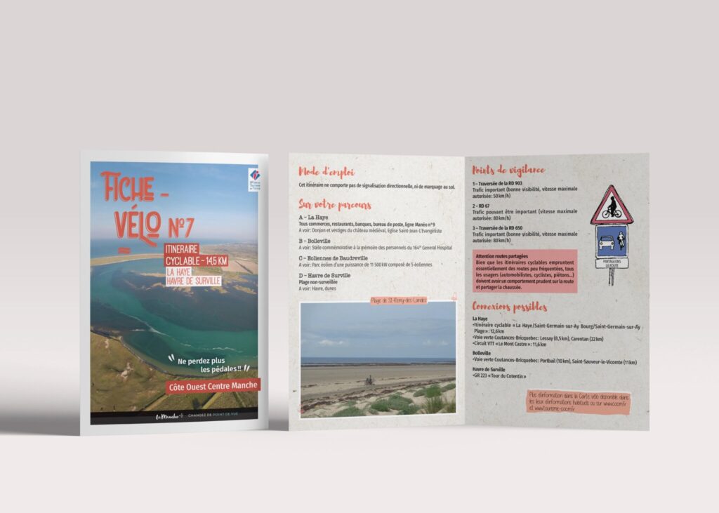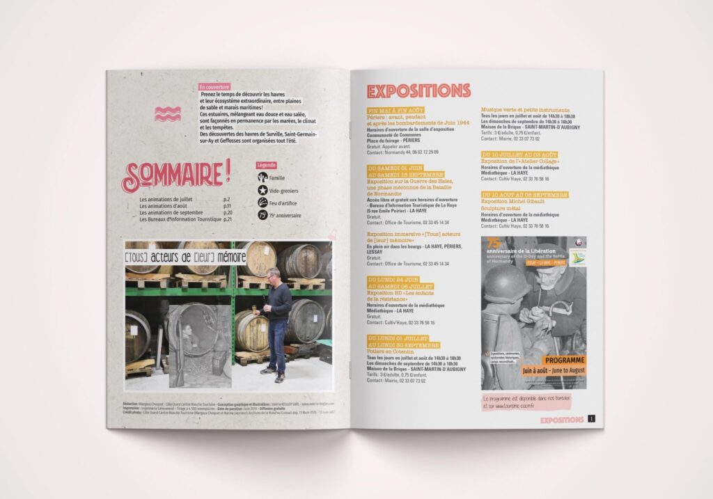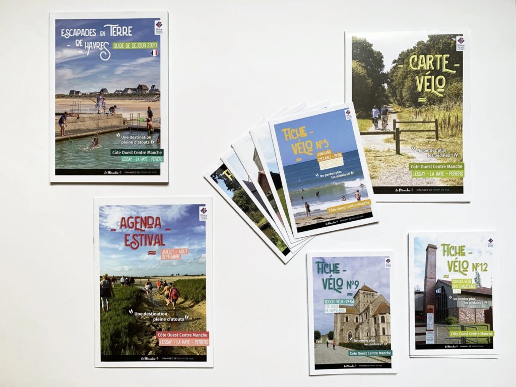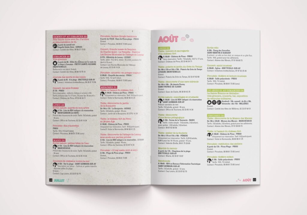 Création de l’identité visuelle pour l’Office de Tourisme Côte Ouest Centre Manche (territoire de Lessay, La Haye, Périers). Les objectifs de la ligne graphique : contenir plus d’illustrations visant à se rapprocher d’un carnet de voyages (animer et être plus convivial), apporter des touches ludiques par la mise en exergue de certains contenus, être plus structuré et plus hiérarchisé, mettre en avant le territoire avec des plus grands visuels. Ci dessous, le guide de séjour 2020, l’agenda estival 2019, la carte et les fiches vélos. Le guide de séjour Quelques illustrations Le guide des animations La carte de vélo Les fiches vélos