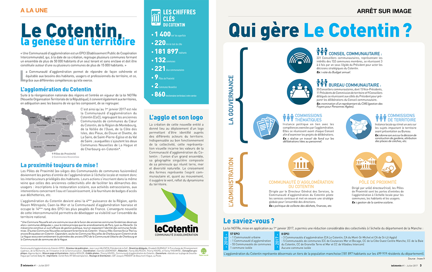 Exécution : mise en page, infographie et pictogrammes (conception : Agence Aprim) pour le magazine Le Cotentin.